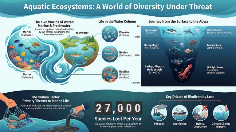 Aquatic ecosystems found in and around water bodies play a crucial role in sustaining biodiversity, supporting fisheries, regulating climate, and protecting vulnerable coastal regions. Scientists