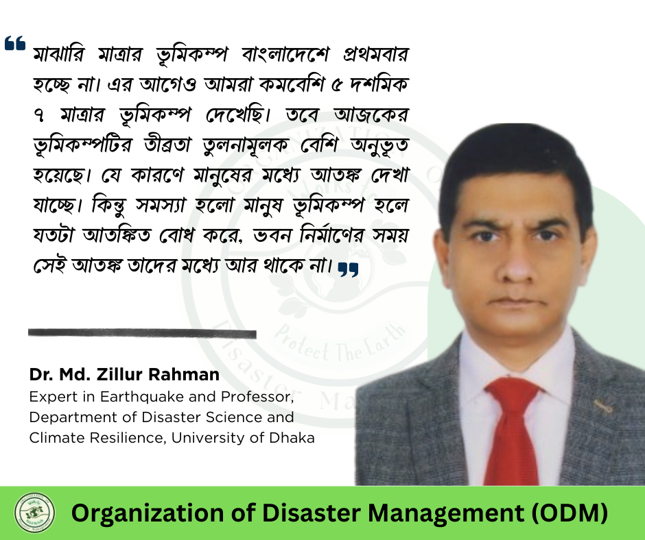 This is not the first time Bangladesh has experienced a moderate earthquake. We have previously witnessed earthquakes measuring around 5.7 as well. However, today’s quake was felt more strongly than usual, which created widespread panic. In reality, there is no significant reason to be overly alarmed by a magnitude 5.7 earthquake. Bangladesh lies in a moderately earthquake-prone region; therefore, earthquakes of moderate intensity are not unusual here.”